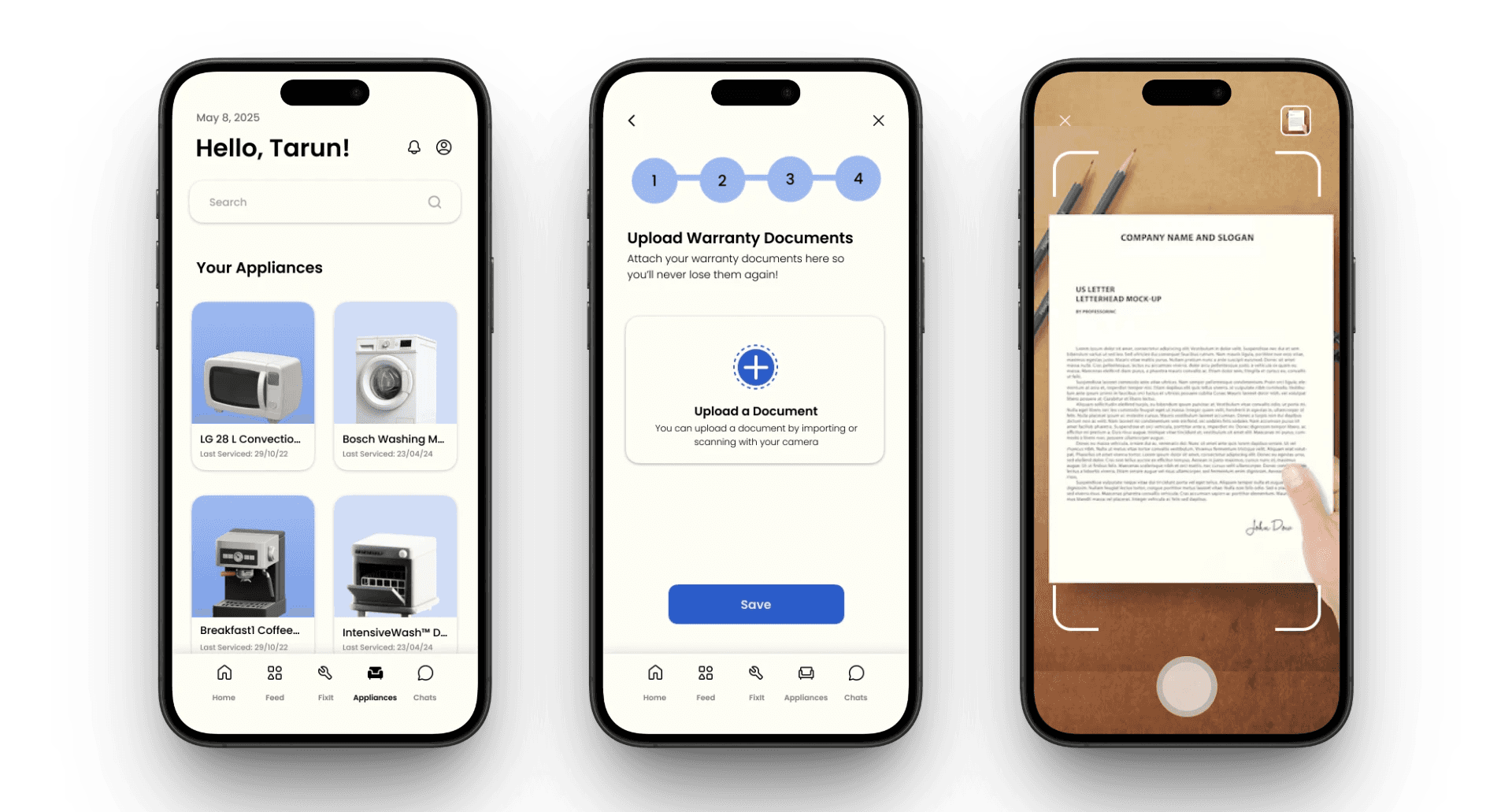 Users can add products that they own to their product collection page and link their warranty documents to quickly search for fixes and link logged repair details about the product. The product page would show its details and specifications, warranty details as well as previous repair logs.