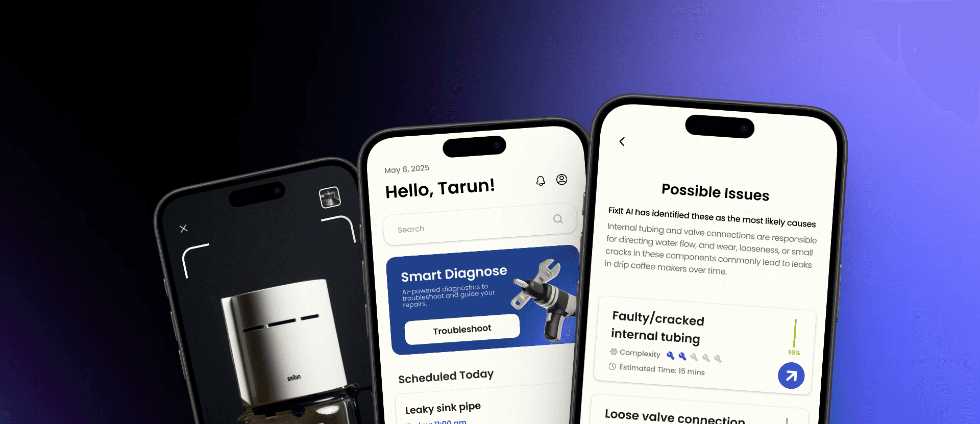 FixItAI is a service that uses AI and AR to help users diagnose and fix common household issues, from leaky faucets to cracked walls.